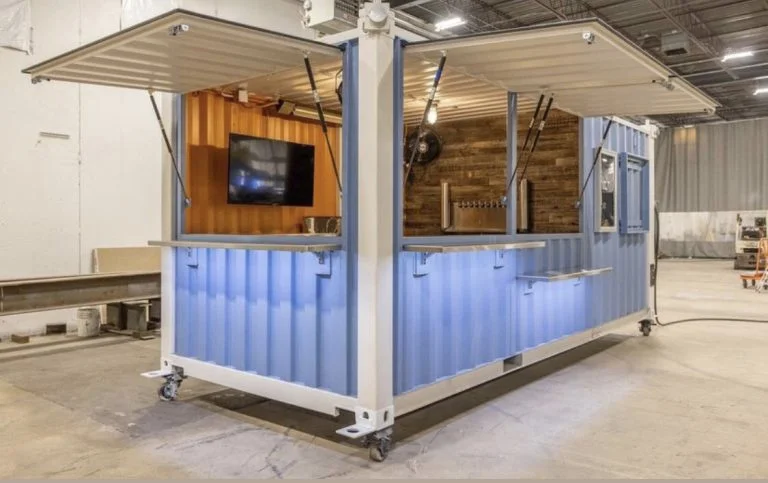 Der 20-Fuß Bar-Container von KsContainers ist ein mobiles, modulares Raumkonzept, das sich perfekt als Bar oder Snack-Bar für unterwegs eignet.